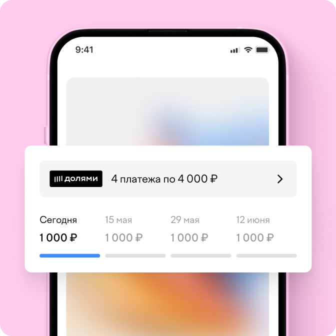 Оплатите 25% стоимости покупкиОставшиеся 3 части спишутся с карты автоматически с шагом в две недели